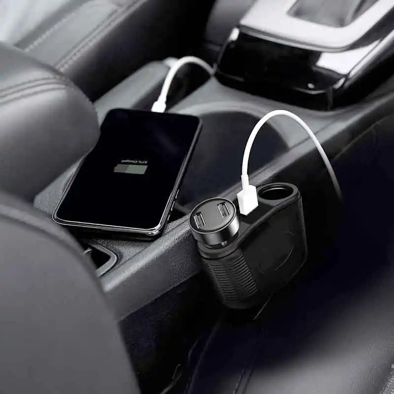 · 4 moduko kargatzeko gaitasuna:Zigarro-pizgailuaren entxufe bakar bat autoaren bi korronte eta bi USB kargatzeko atakatan zabaltzen du (QC 3.0 eta PD 25 W-ko karga azkarra onartzen dute).