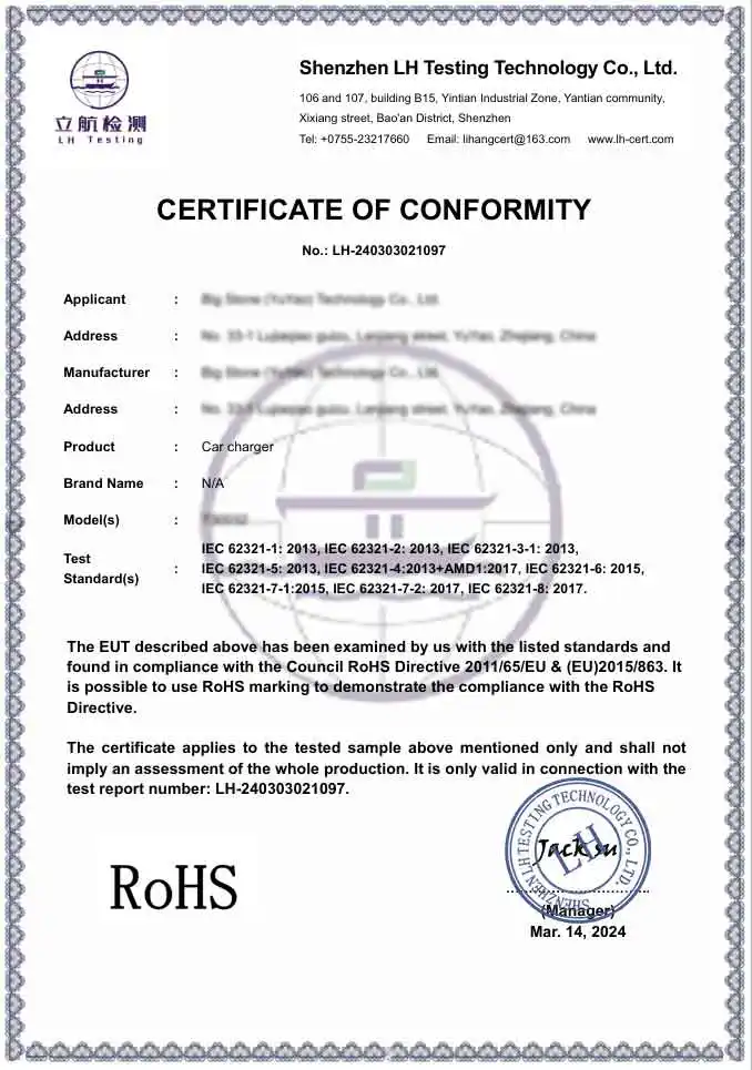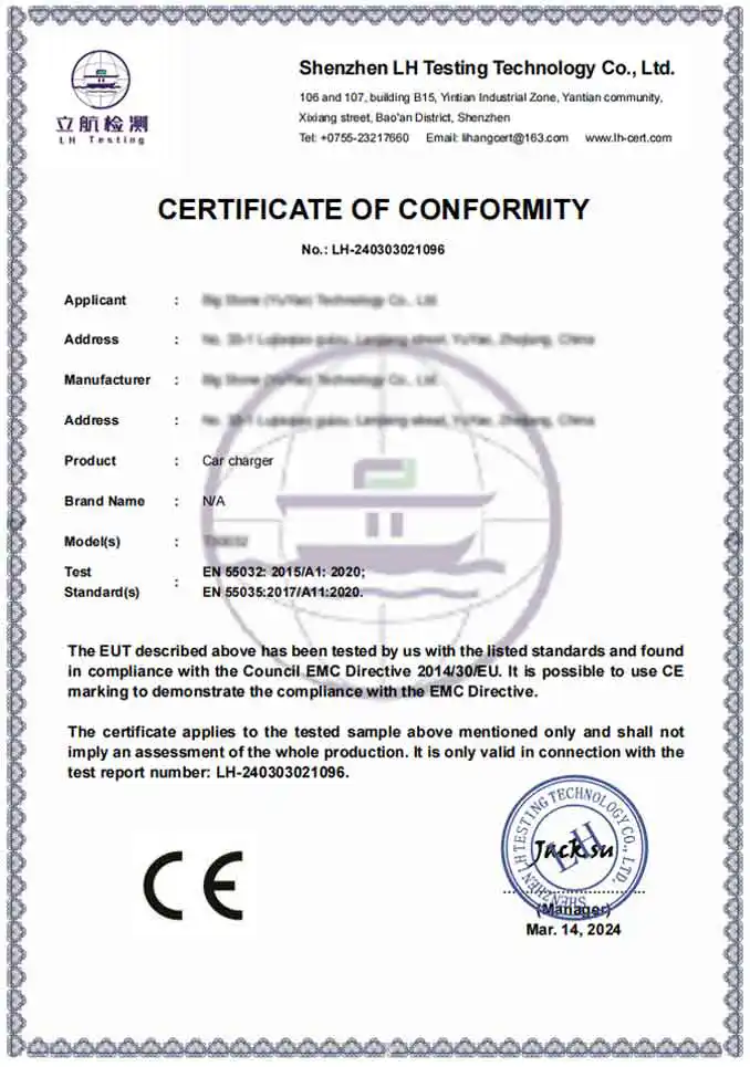 A: Fabrika profesional gisa, gure produktuak nazioarteko segurtasun eta ingurumen arauekin guztiz betetzen dira. CE eta RoHS ziurtagiridun produktuak eskaintzen ditugu. Gainera, gure produkzio-instalazioak BSCI eta ISO ziurtagiria du, gure auto-kargagailu-egokigailuek mundu mailako marka premiumek eskatzen dituzten estandar tekniko eta etiko zorrotzak betetzen dituztela bermatuz.