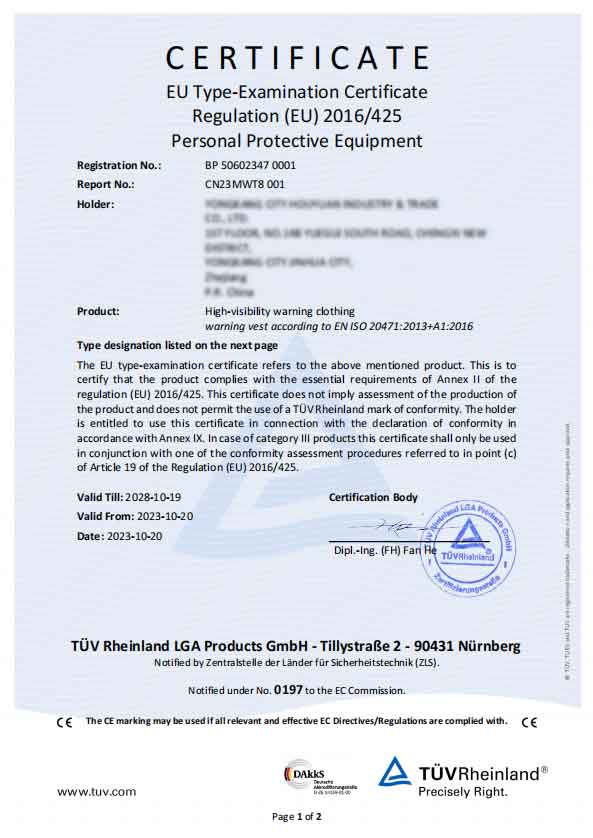 A2: Logotipo pertsonalizatuko segurtasun-txaleko guztiek EN 20471 egiaztatutako probak gainditzen dituzte, EBko bide-segurtasunaren inportaziorako eta ingeniaritza masiboko kontrataziorako guztiz kualifikatuak.