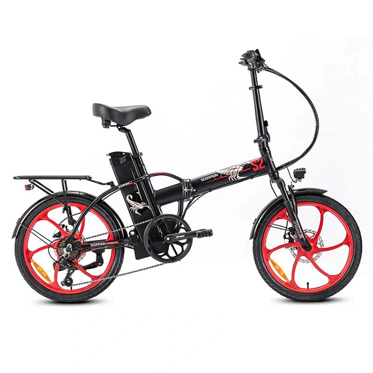 Gurpilen diseinu dotorea eta indartsua: Bizikleta elektriko tolesgarriak profil ausarta duten bost ahodun aleaziozko gurpil gorriak ditu. Gurpil hauek estilorako eta potentziarako dira, eta disko balazta-sistema fidagarri bat dute balaztatzeko esfortzurik gabe eta segurua izateko.