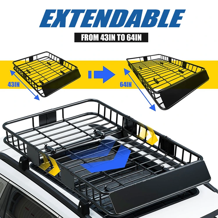 Diseinu hedagarria: Teilatu-bakarroiaren saski honek diseinu hedagarri adimentsua du: tamaina estandarra (43" x 39" x 6") auto trinkoentzat eta 64" arte zabal daiteke ibilgailu handiagoentzat, zama-lekua maximizatzen du. Bere forma tolesgarriari esker, erraz desmuntatu, garraiatu eta gorde daiteke erabiltzen ez denean. Bidaiatzeko eta biltegiratzeko beharretarako egokia da.