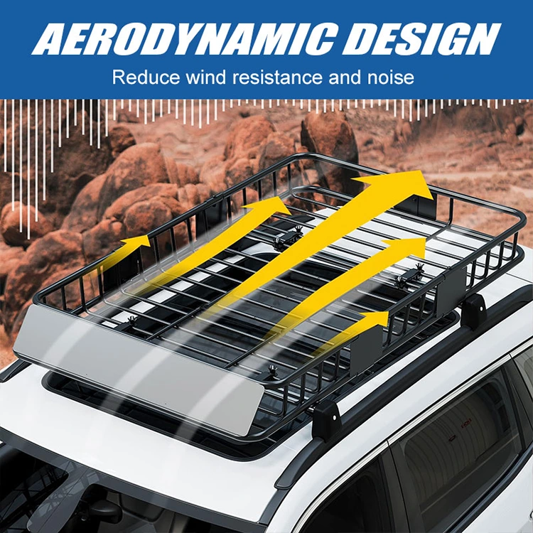 Fancy Roof Rack Carrier Basket-en diseinu aerodinamikoak haizearen arrastaketa eta zarata murrizten ditu gidatzeko garaian. Diseinuari esker, airea libreki isurtzen da bastidorearen gainean, arrastatzea eta erregaiaren kontsumoa murriztuz. Autopistan ibiltzeko errespetua da; ibilaldi isilagoa eta leunagoa eskaintzen du, nahiz eta abiadura handian.